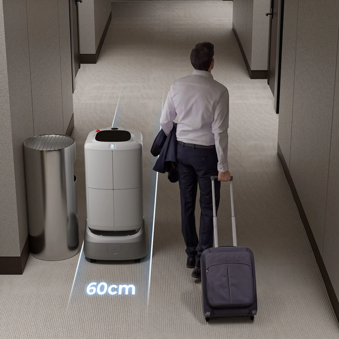 闪电匣系列继承前代产品优秀特性,室内配送顺畅高效,并支持多层楼地图快速复制,建图更便捷。 高配版本[1]搭载 PUDU VSLAM+定位导航方案,专为酒店半户外场景量身打造,拓展服务边界。